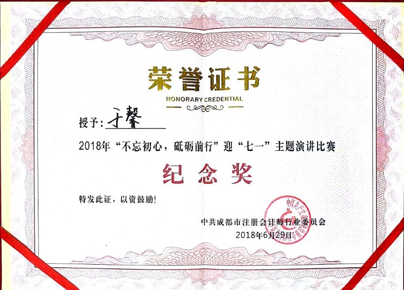 2018年6月29日,我公司参加中共成都市注册会计师行业委员会举办的“不忘初心 砥砺前行”迎“七一”主题演讲比赛