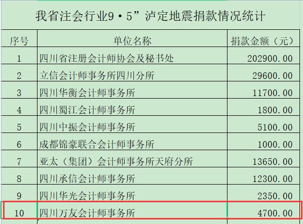 我所在“9·5”泸定6.8级地震四川省注册会计师行业捐款情况通报