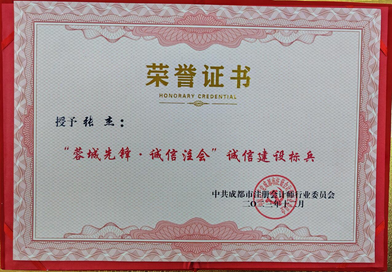 2023年12月,我四川万友会计师事务所和主任会计师张杰被中共成都市注册会计师行业委员会分别命名为“蓉城先锋·诚信注会”诚信建设点和“蓉城先锋·诚信注会”诚信建设标兵