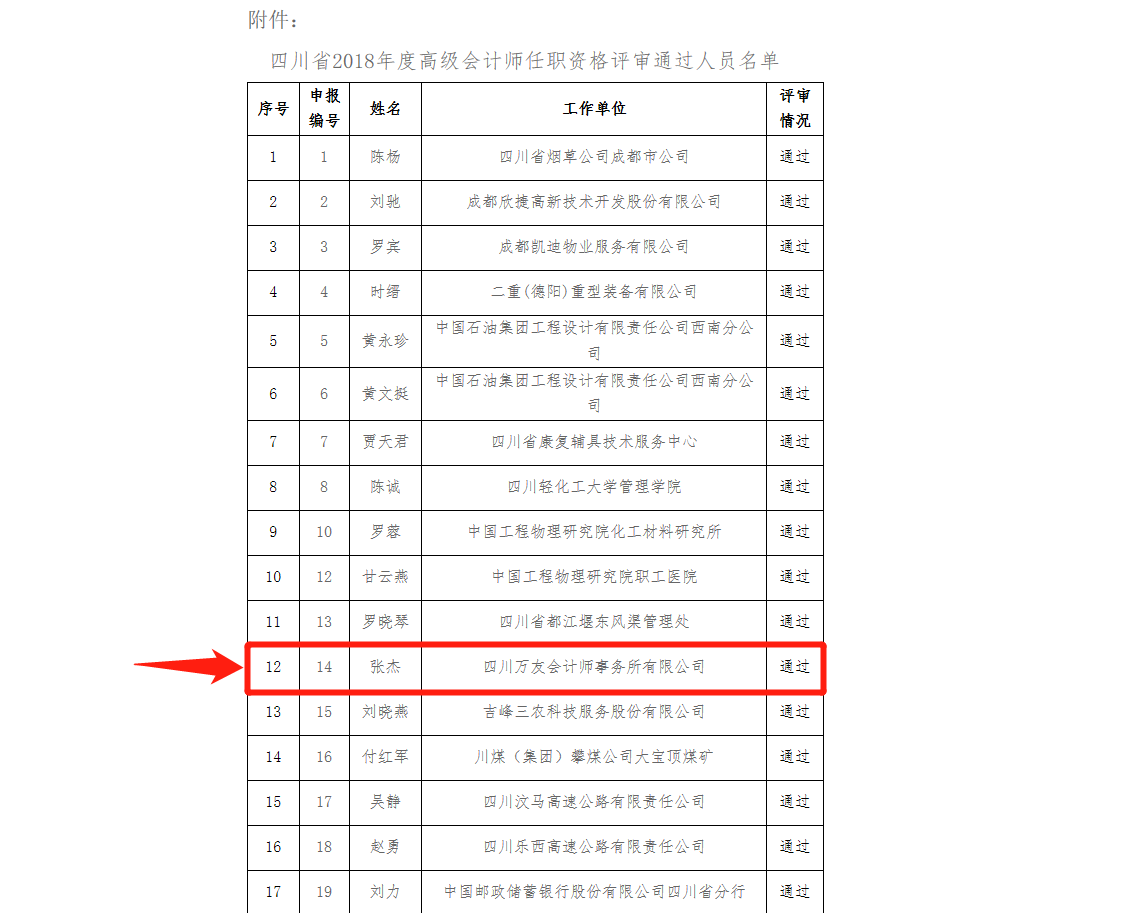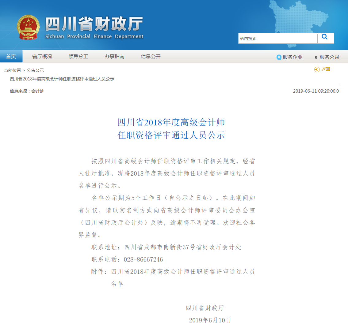 四川省2018年度高级会计师任职资格评审通过人员公示 http://czt.sc.gov.cn/new_web/new_NewShow.jsp?id=5125&tname=%E5%85%AC%E5%91%8A%E5%85%AC%E7%A4%BA&TS=1561434486885
