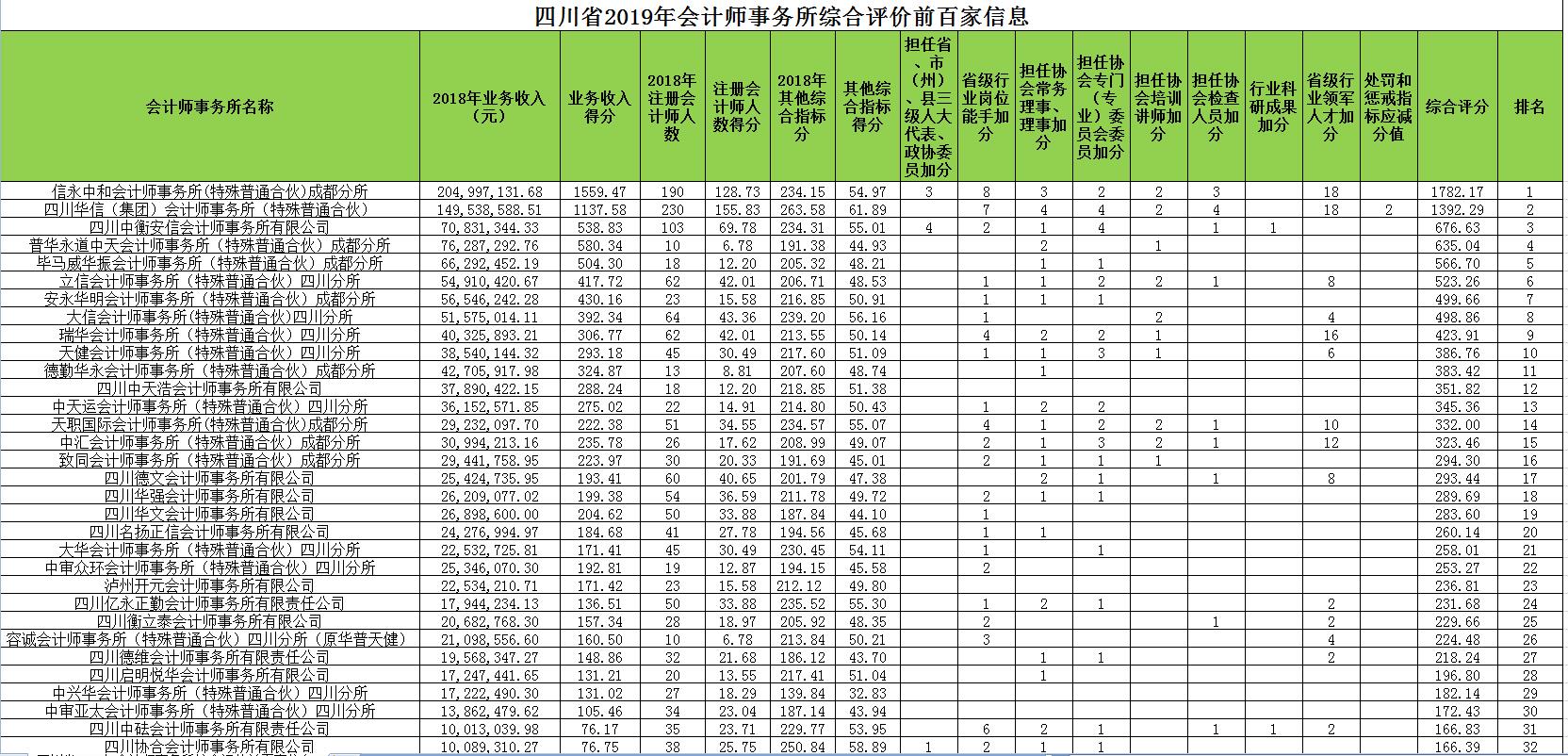 热烈祝贺我所进入四川省2019年会计师事务所综合评价前50强