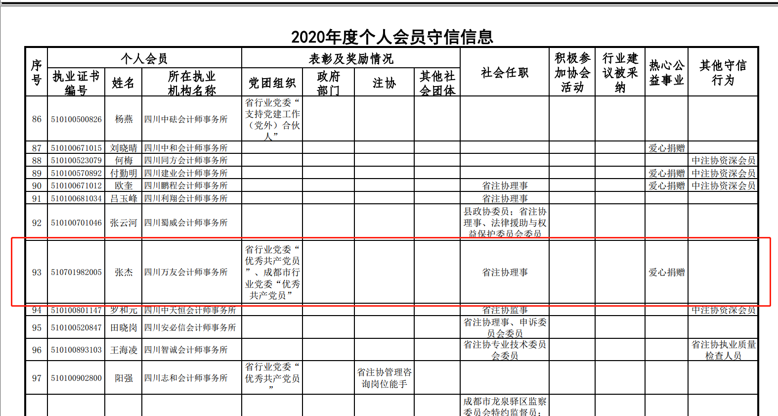 2021年3月,四川万友会计师事务所有限公司及我所法人代表被列入四川省注协2020年度诚信档案