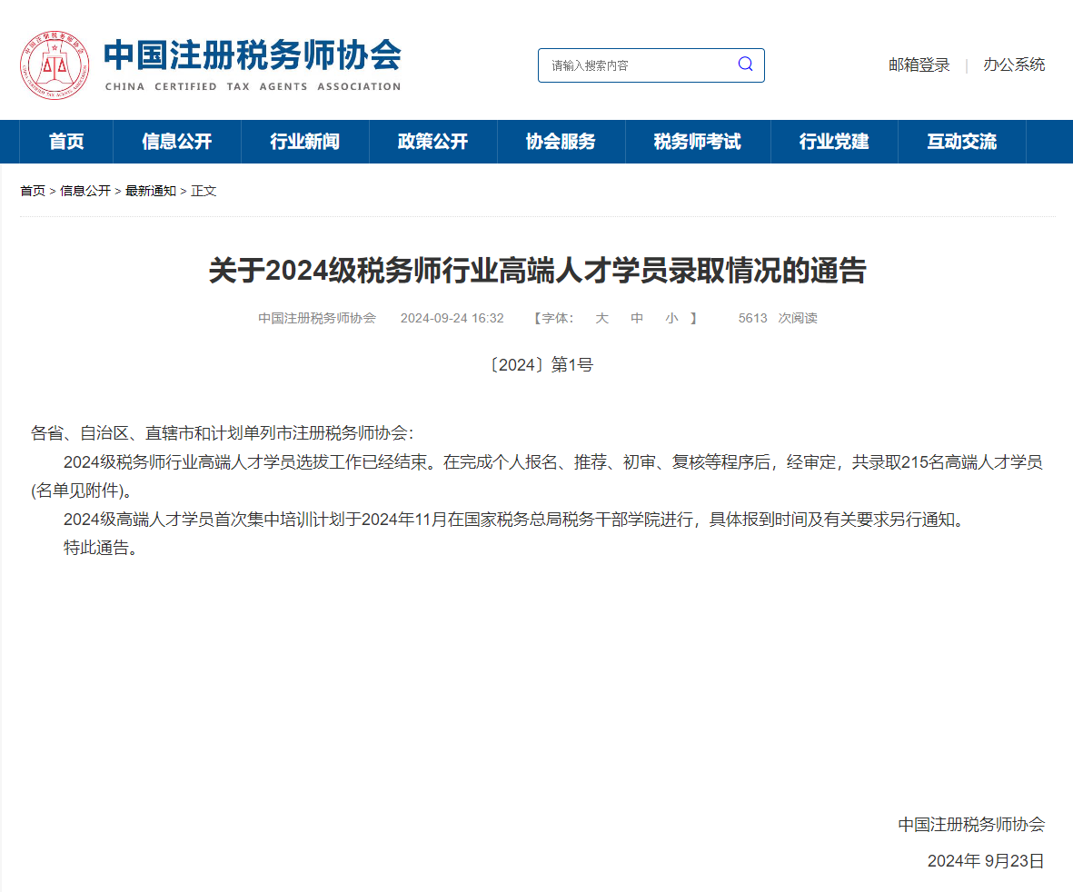 我税务所侯江跃老师被中国注册税务师协会录取为2024级税务师行业高端人才学员