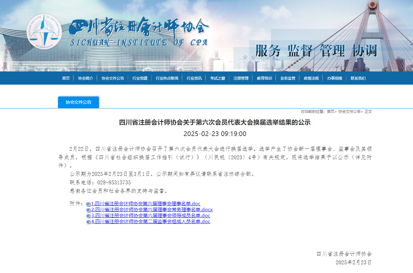 我所主任会计师张杰入选四川省注册会计师协会维权申诉委员会委员