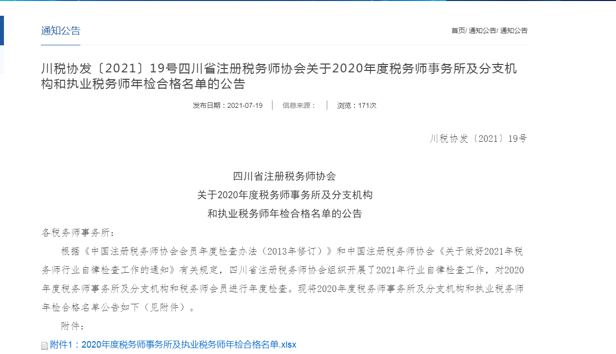 2021年7月19 日,四川万友税务师事务所以及执业税务师年检合格名单